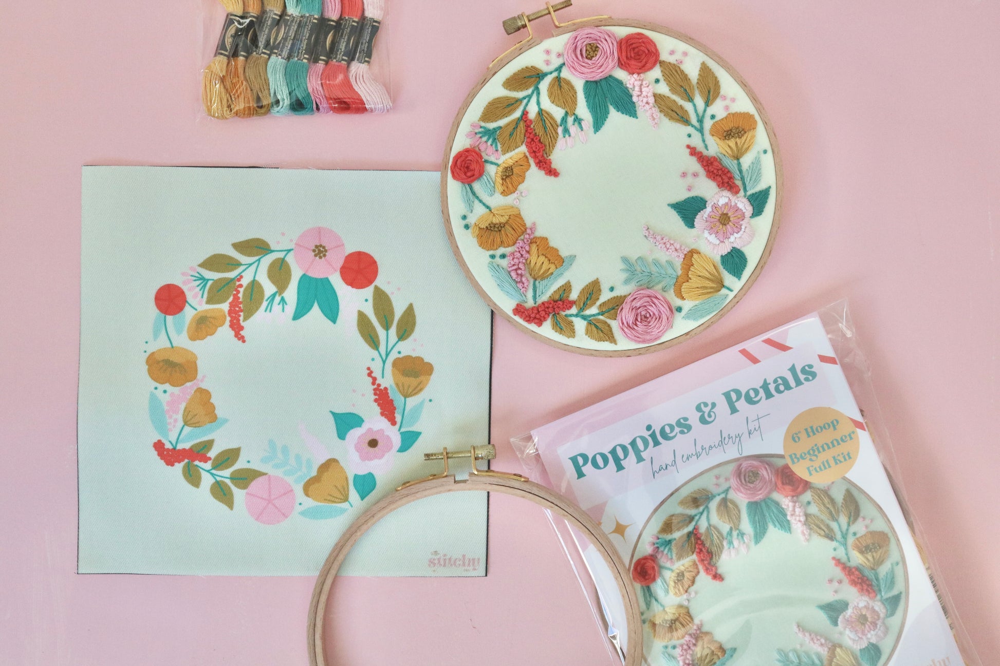 6" Poppies and Petals Floral Embroidery Kit - Beginner