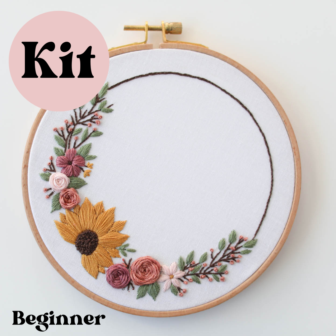 6" Sunflower Wreath Embroidery Kit - Confident Beginner