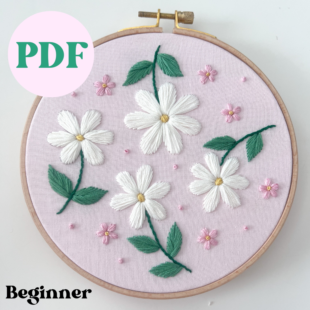 PDF Beginner Daisies Hand Embroidery Pattern - Beginner