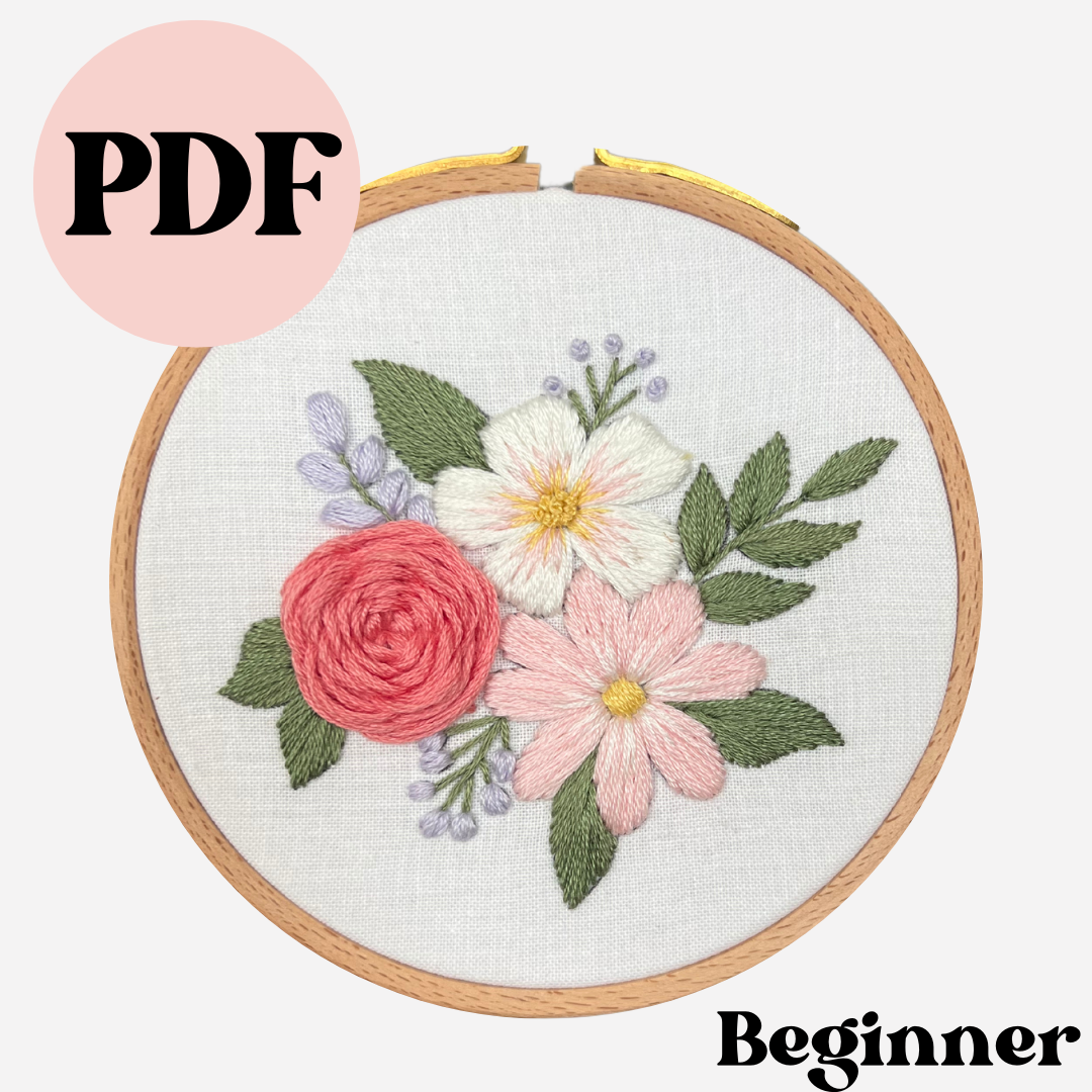 PDF Beginner Pastel Blooms Pattern - Digital Download - Easy to Stitch