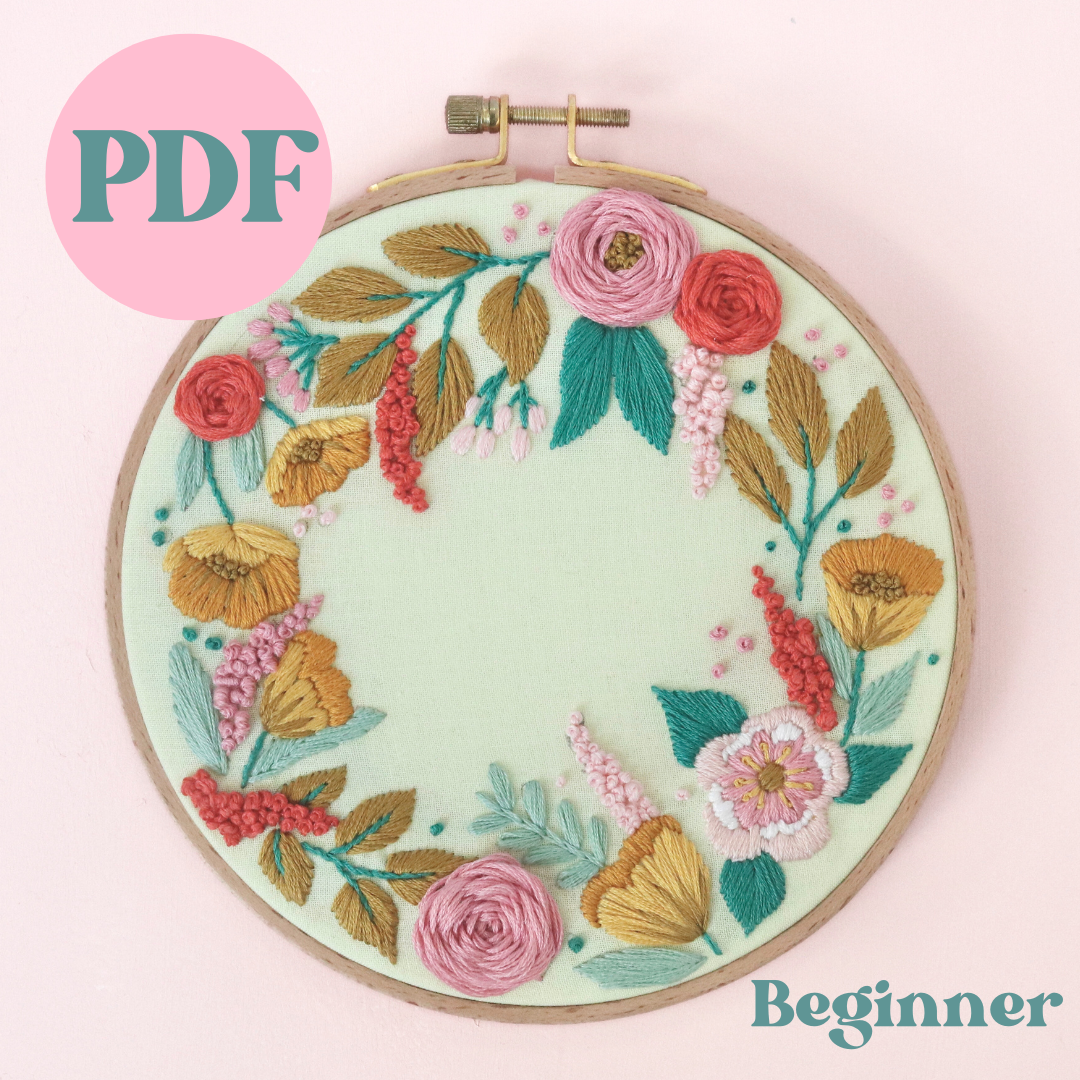 This ‘Poppies and Petals’ Floral Embroidery Pattern is designed for a 6” hoop.