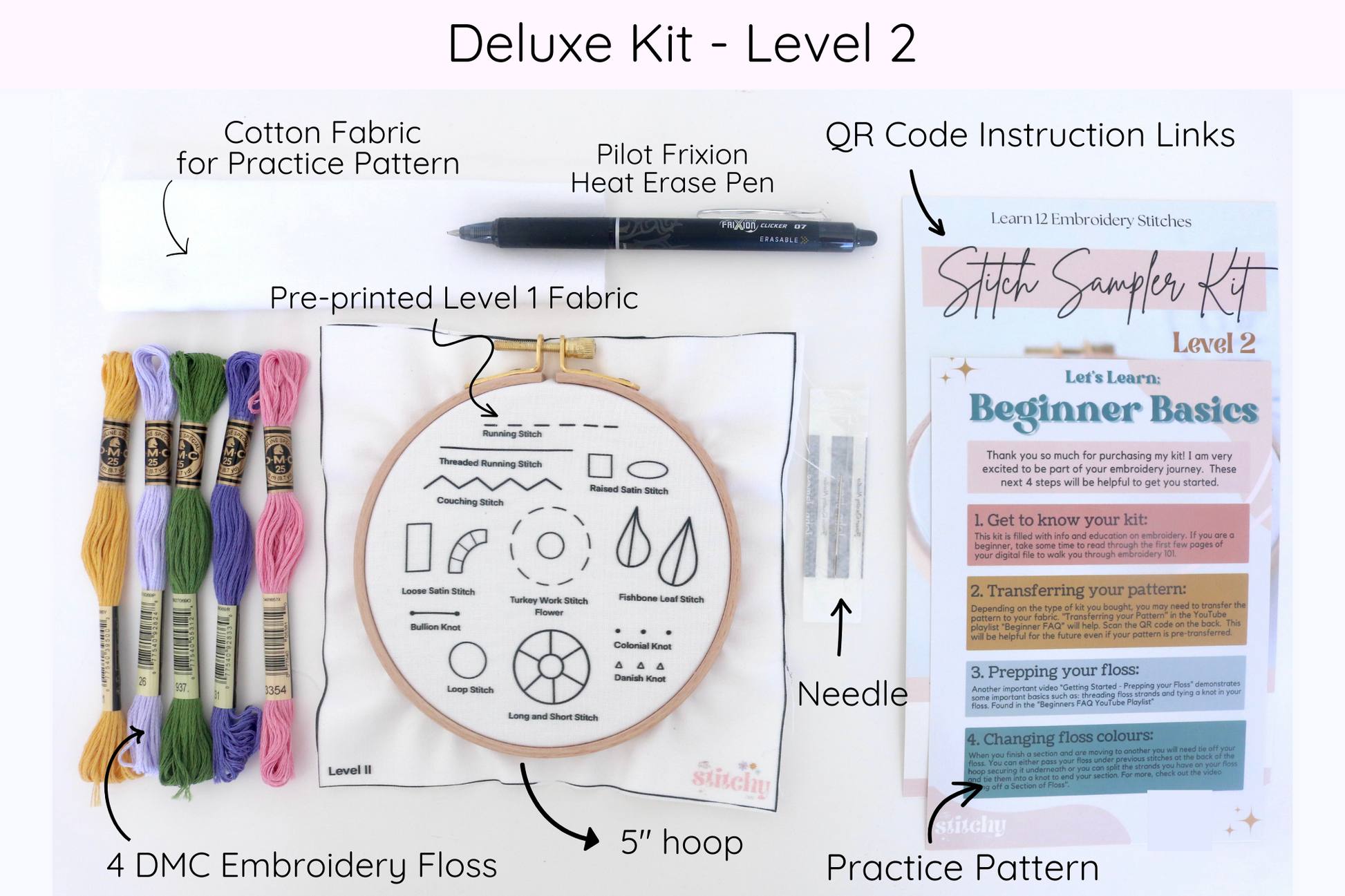 Learn to Embroider - LEVEL 2 - Stitch Sampler Beginner Embroidery Kit